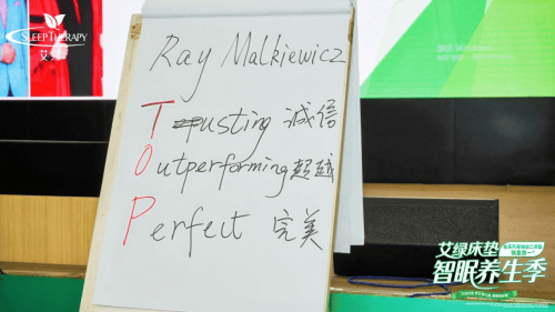 活动特邀重磅嘉宾床垫教父、运时通控股集团董事长陈燕木博士在特训营上的授课,为这一方针注入了精神内核。陈博士结合多年行业经验,强调“努力拼搏精神”,鼓舞士气◆•,振奋精神★▽。他还讲述了艾绿床垫的T-O-P理念,让人更深刻意识到艾绿的精髓□…。
